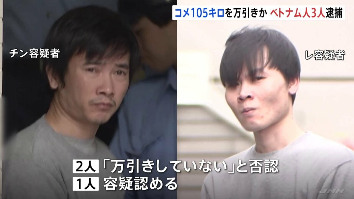 群馬県内のスーパーからコメ105キロなどを万引きしたとして、ベトナム国籍の男3人が警視庁に逮捕されました。窃盗の疑いで逮捕されたのは、いずれもベトナム国籍のチン・クオック・クオン容疑者(42)と、レ・ホン・クアン容疑者(28)ら男3人です。チン容疑者らは今年5月、群馬県前橋市と伊勢崎市のスーパーから「コシヒカリ」や「ゆめぴりか」などあわせて105キロのコメなどを万引きした疑いがもたれています。